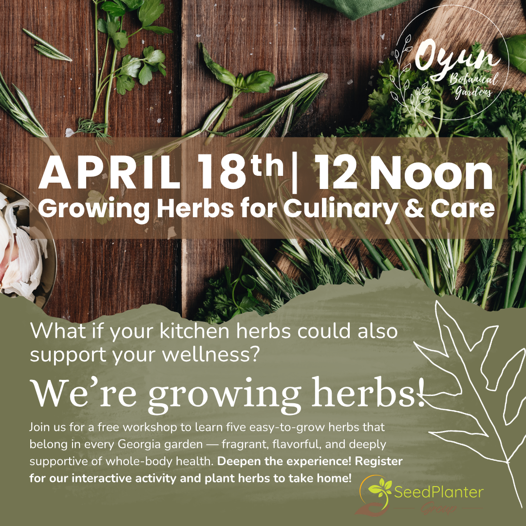 In this interactive spring session, we’ll focus on five easy-to-grow herbs that belong in every Georgia garden — fragrant, flavorful, and deeply supportive of whole-body health.